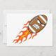 Esta design é de um futebol americano que está em chamas. É feito no estilo de desenho animado. O futebol americano está voando pelo ar com chamas saindo do fim. O futebol também tem um rosto que tem uma expressão determinada e revoltada. Este futebol americano em design de fogo parece excelente nestes convites