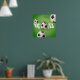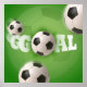Bolas de futebol (bolas de futebol) em movimento sobre fundo verde com letras brancas "GOAL".