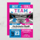 O gênero do tema desportivo revela design de cartas de convite com capacetes de futebol e arena. Cor-de-rosa quente e azul com chá de fraldas preto, cinza e sotaques brancos.