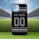 Adicione seu nome e número favorito — Este design de esporte preto e prateado é perfeito para qualquer fã profissional, universitária ou segundo grau. Você pode até reclamar isso para a sua equipe de futebol de fantasia. Clique no botão PERSONALIZAR para fazer ainda mais alterações.