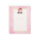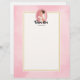 Letra com o texto: Futura Sra., com o seu nome personalizado. Ilustrada com uma noiva marrom feliz sorrindo. Ela está vestindo um vestido branco e segurando um buquê de flores com um véu bonito no cabelo. Defina dentro um quadro de câmera oval cor-de-rosa com uma borda dimensionada. Uma imagem de aquarela cor-de-rosa macia para o fundo com um retângulo colorido creme colocado sobre cima com uma borda dourada.