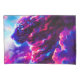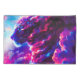 A powerful cosmic leopard emerging from vibrant clouds of neon pink, electric blue, and deep violet.