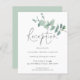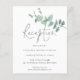 Um valor para o alternativo do ORÇAMENTO em tamanho menor de 4,5 x 5,6" de semirbrilho de 110 lbs, que é de espessura semelhante a um cartão postal (no entanto, não é adequado para uso como cartão postal). POR FAVOR, OBSERVE QUE HÁ UM convite por folha. Gabinete de Casamento de Recepção Eucalyptus. Um roteiro elegante para o título e o resto do texto que você pode personalizar facilmente com as elegantes folhas de cor de waercolor eucalipto que fluem da esquerda.