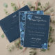 As Ilhas Havaianas são um destino de férias de topo, sem dúvida, e fantástico para um local de casamento. Há tantos temas para escolher ao planejar seu casamento. As flores tropicais são lindas, quer as usem em seus buquês, quer em seus restos. Você pode ter sua cerimônia em um hotel ou na praia. Seja o que for que escolhermos, ficarás satisfeito com a forma como isso acontece. Este marinho e o cartão de convite para flores tropicais azuis faz parte do pacote de estórias de casamentos de temas tropicais azuis Marinhos. Use este conjunto de papelaria, quer você esteja planejando um casamento de destino havaiano ou tendo um estadista de casamento de temas tropicais. A design apresenta flores de hibisco e plumeria em vários tons de azul denim contra fundo marinho. Também inclui um Código QR para fornecer aos seus convidados informações adicionais sobre o dia especial.