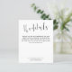Elegante Script Wedding Details Enclosure.Um preço do alternativo SMALLER 4,5" x 5,6". Disponível em um STOCK DE CARTÃO SEMI GLOSS 110 lb, que é a opção padrão (recomendada para convites), OU um STOCK DE PAPEL THINNER SATIN FINISH 80 lb (ideal para gabinetes). Os envelopes são um extra opcional e são ligeiramente maiores que o tamanho da placa. Avise aos seus hóspedes os detalhes como instruções e informações de alojamento para o seu casamento quando enviar os convites. Este design elegante definiu a caligrafia na moda para o título Os detalhes e o resto do texto podem ser facilmente personalizados para as suas palavras. Você pode escolher qualquer cor de sua escolha para o texto e as cores de fundo em ambos os lados, por meio da opção personalizar mais.