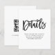 Um valor para o alternativo do ORÇAMENTO em tamanho menor de 4,5 x 5,6" de semirbrilho de 110 lbs, que é de espessura semelhante a um cartão postal (no entanto, não é adequado para uso como cartão postal). POR FAVOR, OBSERVE QUE HÁ UM convite por folha. Gabinete de Detalhes de Casamento de Código QR do Script de Orçamento. Adicionar seu código QR ao seu site de casamento no verso faz com que esta seja uma opção conveniente para seus convidados verem todos os detalhes. Você pode criar códigos QR gratuitamente on-line. Basta pesquisar "Criador de código QR" e muitas opções surgem para criar gratuitamente. Uma tendência de tipografia com motivo cardíaco em preto para o título principal Detalhes e o resto do texto que pode facilmente personalizar.
