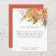 Detalhes do Convidado de Casamento Tropical. Um alternativo de papel de 4,5" x 5,6". Os envelopes são um extra opcional. Avise aos seus hóspedes os detalhes como instruções e informações de alojamento para o seu casamento quando enviar os convites. Folhagem colorida e florais decorados no canto superior direito e um fundo de coral de coordenação está no verso, que pode ser alterado para outra cor se você desejar através da opção Personalizar mais. O texto pode ser facilmente personalizado para as suas palavras.