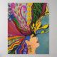 Originalmente pintei esta beleza em tinta acrílica na canvas em 2014 e ela é a minha representação de Gaia, a Deusa da Terra. Para mim, ela representa uma mulher forte, confiante, e fundamentada que está em total paz consigo mesma e com o Universo. Seu cabelo selvagem de penas, folhas e pedaços de cor clara representa a beleza da natureza e ela sempre me faz sentir calma, feliz, e pronta para levar o dia.