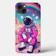 Pegue seu telefone em uma jornada cósmica com este design de astronauta caprichoso! Esse gráfico vibrante e imaginativo apresenta um astronauta solitário em um terno cor-de-rosa na moda, relaxando em um planeta alienígena rochoso. A cena é trazida à vida com um espantoso arco-íris cruzando o céu, cercado por planetas e estrelas coloridas, criando uma atmosfera surreal e sonhadora. Este design único e colorido é perfeito para amantes do espaço, fãs de ficção científica ou qualquer pessoa que queira uma capas de iphone única e atraente. Proteja seu telefone em estilo galáctico com este acessório cósmico.