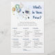 Estes elegantes "What's In Your Purse Cards" são uma forma excelente de se divertir com o seu Chá de fraldas e é garantido ser um grande sucesso! Simplesmente passá-los durante o Chá de fraldas, onde os convidados se divertirão a passar pelas suas bolsas e a verificar os itens que têm na lista. A pessoa com mais pontos ganha! A design apresenta um astronauta com planetas coloridos com estrelas de folha de ouro falsa.