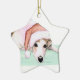 Este ornamento caracteriza uma reprodução de minha pintura original da aguarela de um galgo em um chapéu do papai noel.