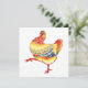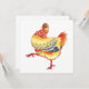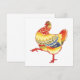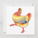 Ilustração antiga de desenho de animal de fazenda apresentando uma bela galinha com as cores vibrantes de um pôr do sol ou nascer do sol. Originalmente de um rótulo de caixa de frutas para propaganda da marca Hi Stepper de frutas cítricas.