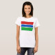 A frente desta t-shirt exibe corajosamente a bandeira da Gâmbia com as suas bandas distintivas, vermelhas, brancas, brilhantes, azuis e verdes horizontais. Isso é combinado atrás por um mapa atraente da Gâmbia.