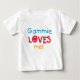Gammie ama-me t-shirt, cartões, etiquetas, os bodysuits ensacam, e mais com design vermelho, amarelo, e azul colorido do texto e do coração. Este Gammie ama-me roupa e os artigos do presente farão o gammie sorrir!