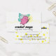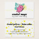 Fada de animais lindos ou monstros com gancho mágico de crochê neste cartão de visita para artesanatos de fios crochetados, personalizada com sua escolha de esquema de cores e fontes, perfeita para venda de presentes e artesanatos.