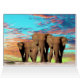 Imagens são três elefantes rolando num bonito amanhecer