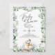 Bonito convite para chás de fraldas com adoráveis ganso de bebê/fofoca cercado por verde-aquarela e flores. Bonito roteiro escrito à mão para o Chá de fraldas é perfeito para este doce convite neutro de gênero. Coordenando de volta. Veja a coordenação de itens no nosso compro, Encantado Finch.