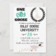 Celebre as suas pequenas comemorações do primeiro aniversário enquanto elas formandos da "Universidade de Goose Bobo"! Esta design é divertida e engraçada, assim como seu bobo ganso e é perfeita para um aniversário temático ganso!