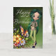 Garota Asiática Belos Flores Feliz Cartão de Anive