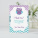 Garota Coruja roxa e Cartões de agradecimentos e fanfarrão para Chá de fraldas, Aniversário.