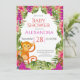 Monkey Pink Tropical Wildlife Girl Chá de fraldas Convite para um convite floral cor-de-rosa e chá de fraldas de macacos. Perfeito para um chá de uma ilha Tropical/menina de matas.