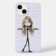 Garota picante com óculos e cabelos bobinados em um fundo de corações roxos. O plano de fundo pode ser alterado.