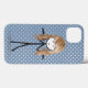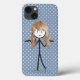 Coloque uma garota com cabelo louro e tênis azuis em um padrão de bolinhas azul.