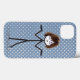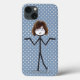 Coloque uma garota com cabelo, óculos e tênis azuis em um padrão de bolinhas azul.