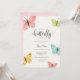 Celebre a sua chegada com este convite de chá de fraldas de borboletas. Apresentando borboletas aquáticas em cores pastéis macios e detalhes de confete lúcidos, este design charmoso é perfeito para o chá de fraldas de uma menina. Personalize facilmente com seus detalhes de eventos e impressione seus convidados com um convite doce e na moda. Ideal para primavera, verão ou celebrações inspiradas na natureza.
