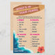 Prepare-se para rir com este divertido Bebê no Conselho O que há no seu jogo de chá de fraldas da bolsa! Os convidados verificam os itens que têm na bolsa, cada um valendo um número diferente de pontos. O convidado com a maioria dos pontos ganha! Um complemento perfeito para o tema do seu chá de fraldas de praia — disponível em versões para garotos e meninas para coincidir com a sua celebração.
