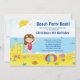 Comece sua festa de piscina de praia com nosso Convite de aniversário de bash da festa de verão apresentando uma linda cena de praia com um castelo de areia, bola de praia, conchas marítimas, barcos de vela e uma garota morena. Convite único para a sua festa de aniversário de nadadora. Apenas personalize com suas informações e você está pronto para ir! Itens correspondentes, incluindo selos de postagem de aniversário, adesivos de favoritos, cartões de agradecimento e obrigado que você também está disponível em nosso compro. ©JW Ilustrations