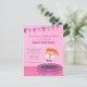 Este convite tem uma garotinha linda pulando e pulando alegremente num trampolim. E por que não? Porque bater num trampolim traz tanta alegria! Bandeiras de vários padrões como bolinhas, listras, estrelas e chevron estão penduradas no fundo. Ao contrário está o padrão clássico de chevron zigzag. A paleta de cores de pinos e púrpura faz deste excelente de convites para as meninas de aniversário! Personalize facilmente com os detalhes do seu partido.