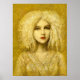 Esta impressão mostra uma bela jovem de branco com cabelo esmagado em um estilo gótico vitoriano. O retrato é colocado sobre um fundo aplicado ao ouro.