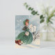Trabalho de arte de Vintage mostrando uma menina loira bonita em Cartões de Natal de Casaco Verde