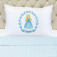 Uma princesa loira de cabelos em um vestido azul cintilante decora esta fronha. Personalize-o com o seu nome. Faz um belo presente de aniversário. Projetado para você pelo Blackberry Boulevard.