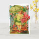 Cartão de Nota para Garota Vitoriana. Menina adorável com um guarda-chuva verde e um cheio de cesta de rosas cor-de-rosa! Cartão perfeito para Dia de as mães, Aniversários, ou qualquer ocasião especial!