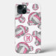 Essa capas de iphone de vôlei, tema difícil para meninas, apresenta cor-de-rosa variada, cinzas e volebolas brancas dispostas em um padrão aleatório sobre um fundo branco personalizável — os painéis de vôlei rosa e cinza são misturados com um padrão caleidoscópico floral para uma aparência esporreira e artística que ainda é esportiva - personalize seu monograma, letra varsity ou número de camisa em um voleibol branco - por katz_d_zynes