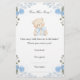 Este cartão de jogo de chá de fraldas é adequado para qualquer jogo/atividade de adivinhação. O design inclui um ursinho de cor d'água com arco azul e uma borda floral.