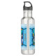 "A vida é simples, apenas adicione água" garrafa de água personalizada. Criaturas subaquáticas, golfinhos, sereias e peixes enquadrados em ondas.