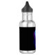 Água-viva grande, azul, desenhada artisticamente, brilhante, brilhante, com longos tentáculos sobre fundo preto com bioluminescência roxa. Água-viva luminosa.