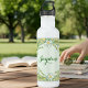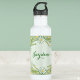 Garrafa de água personalizada daisy em verde e amarelo pastel, em um fundo pontilhado.