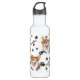 Esta garrafa d'água apresenta o retrato de um artista de um lindo cão Cardigan Welsh Corgi. A imagem é repetida em torno do perímetro da garrafa e colocada sobre um fundo aspergido com estampas pretas. Seu nome ou outro texto em castanho também se repete em volta do perímetro.
