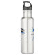 O Homem O Mito A Lenda! Frasco de água da Polícia de Linha Azul fina. DESIGN americano na Polícia de Sinalizador, cores modernas, preto branco e design azul. Personalize com o nome, departamento e data de aposentadoria dos policiais. Veja a nossa coleção para competir com convites de aposentadoria da polícia, presentes da polícia, favoritos para festas de aposentadoria da polícia e suprimentos. COPYRIGHT © 2022 Judy Burrows, Black Dog Art - Todos Os Direitos Reservados. Frasco de água de aço inoxidável personalizado com linha azul fina