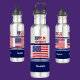 Garrafa de água de aço inoxidável Patriótica Flag dos EUA personalizada. Personalize-o com o seu nome para uma aparência exclusiva de cinta.