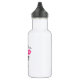 Uma garrafa de água de aniversário personalizada com um design moderno - lábios de barriga cor-de-rosa glamourosos e uma ilustração masculina retrorreflectora do bigode. O texto diz o senhor deputado e a senhora deputada e o senhor pode personalizar com o seu nome e número de anos juntos.