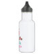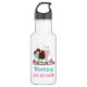 Uma garrafa de água com um ditado engraçado - Trabalhando até o sorvete. Ilustrada com um bar de chocolate, um sundae de 3 scoop com cobertura de chocolate, borrifadas e uma pequena cereja no topo. E um float de morango com chantilly.