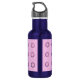 A pintura de bolinhas roxas e cor-de-rosa em camadas em fundo de rosa claro é impressa em garrafas de água personalizadas.