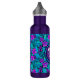 Bonito padrão elegante de flores roxas, azuis, lacas, tartarugas e verdes e garrafa de água personalizada folhagem.