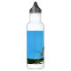 Feche a foto de uma linda borboleta manchada, preta e branca, em uma folha com um céu azul e nuvens brancas.
