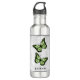 Mantenha uma bebida legal de água refrescante consigo com uma garrafa de água flexível personalizada com borboleta verde. Design de garrafa d'água apresenta um par de borboletas vibrantes que repousam sobre uma vinha floral branca contra um fundo de cinza claro. Itens de presentes adicionais disponíveis com este design, bem como uma variedade de cores.